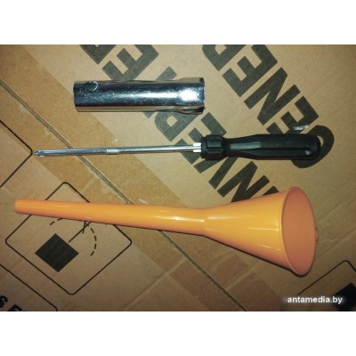 - генератор;- инструкция по эксплуатации;- мерная лейка для заливки масла;- ключ свечной;- отвертка.