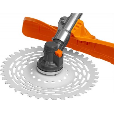 бензиновый, двухтактный, 2300 Вт, оснастка: леска+металлический диск, ширина скашивания: 25.5-42 см, легкий пуск, 9.1 кг
