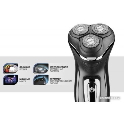 роторная, сухое бритье, питание от АКБ, питание от сети, 40 минут автономной работы