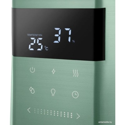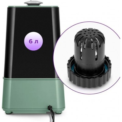 ультразвуковой, помещение до 35 м?, производительность 450 мл/ч, резервуар 6 л, гигростат, ионизация, шум 0 дБ, цвет зеленый