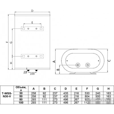 вертикальный/настенный, 50 л, 2 кВт, время нагрева 70 мин, 81.5?43.5?25.8 см