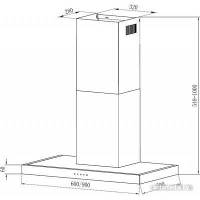 конструкция Т-образная, монтаж настенный, ширина 60 см, управление сенсорное, производительность мотора 1000 м3/ч, цвет нержавеющая сталь