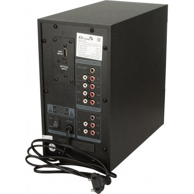FM-приёмник Да Исполнение 5.1 Материал корпуса пластик, МДФ Материал корпуса сабвуфера пластик, МДФ Наличие экрана Да Подключение колонок через USB Нет Подсветка Нет Пульт ДУ Да Суммарная номинальная мощность (RMS) 80 Тип настольная Усилитель встроенный Фазоинвертор Да Цвет черный Питание от USB Нет Работа от аккумулятора Нет Количество динамиков [Тыловая АС] 1 Количество динамиков 1 Все характеристики