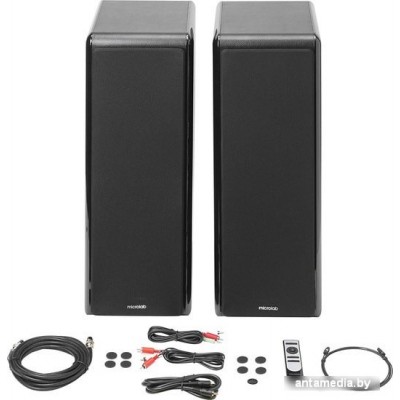 - пульт ДУ- батарейки для пульта ДУ- кабель 2RCA - 2RCA- кабель 2RCA - 3.5 мм- кабель S/PDIF- коаксиальный кабель- кабель для коммутации колонок- комплект накладок- документация