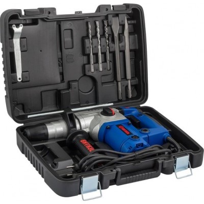 - дополнительная рукоятка- ограничитель глубины сверления- 3 сверла- 2 зубила- документацияПоставляется в пластиковом кейсе