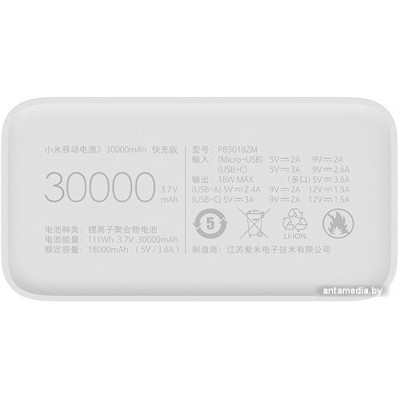 Артикул: Mi Power Bank 3 PB3018ZM 30000mAh (белый)