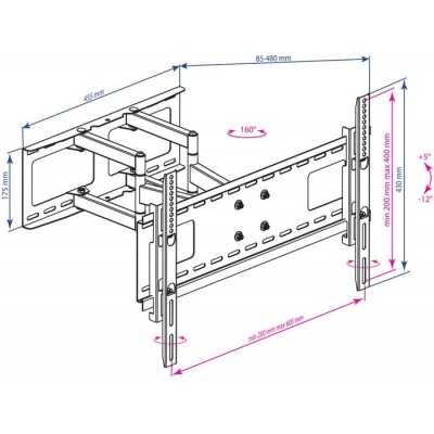настенный кронштейн для ЖК-телевизора 32-75", наклон 12°, поворот 160°, цвет черный