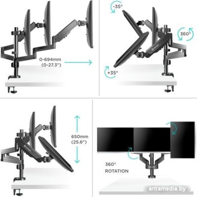 настольный кронштейн для ЖК-монитора 13-32", наклон 35°, поворот 180°, цвет черный