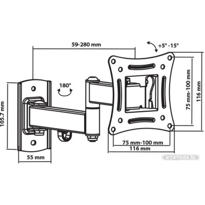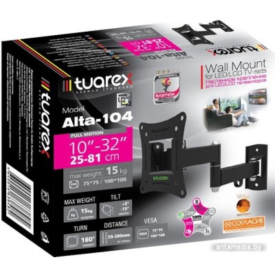 настенный кронштейн для ЖК-телевизора 10-32", наклон 15°, поворот 180°, цвет черный