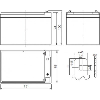 AGM, 12 В, 12 А·ч, макс. ток 180 А, клеммы F2, 151x98x94 мм, 3.6 кг