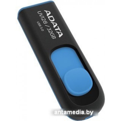 32 Гб, USB 3.0, выдвижной разъем, пластик, скорость 90/40 МБ/с, цвет черный/синий