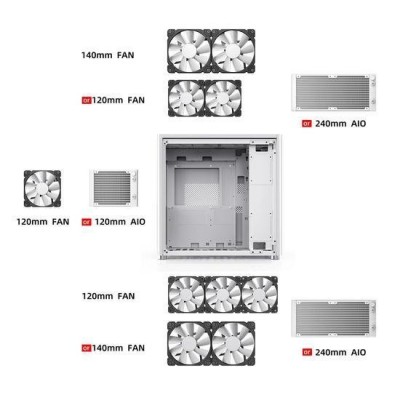 сверху 120mm*2 or 140mm*2сзади 120*1mmснизу 120mm*3 or 140mm*2